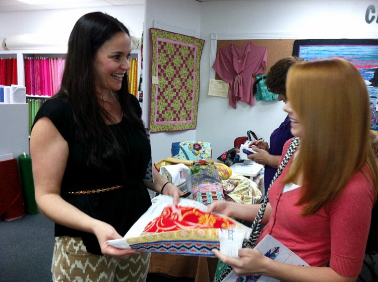 Its finally time for me to tell you all about my day with Anna Maria. I’m just going to start from the very beginning. Around 11:30 on Friday morning, Emilee, Layla, and I packed into her car ready to hit the road. I had had an awful morning and was just ready to escape and have an awesome weekend. We arrived in Tampa around 2 pm and ate at Panera, and then quickly got on our way to the Keep Me in Stitches S. Tampa store to catch the remainder of the meet and greet with Anna Maria. I thoroughly enjoyed hearing about her creative process, and learning about her inspiration. I have a ton of her fabric, and so I was familiar with the fabric itself, but learned so much more about the stories behind each.