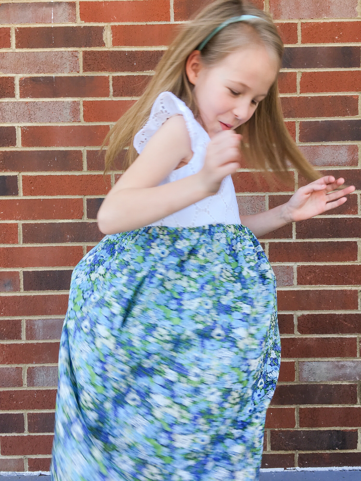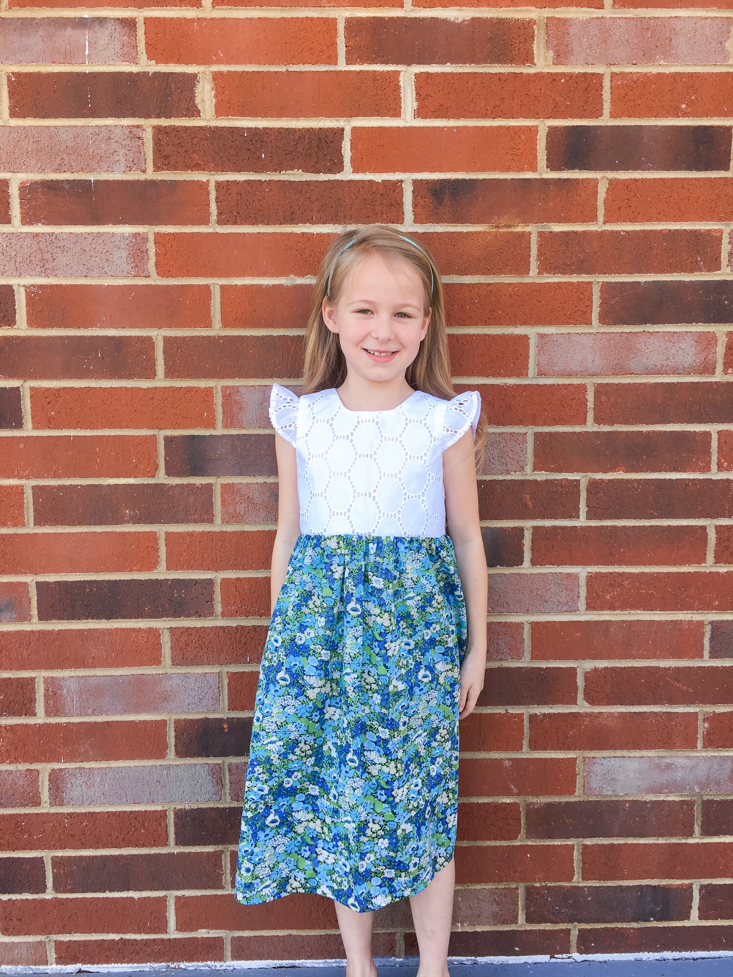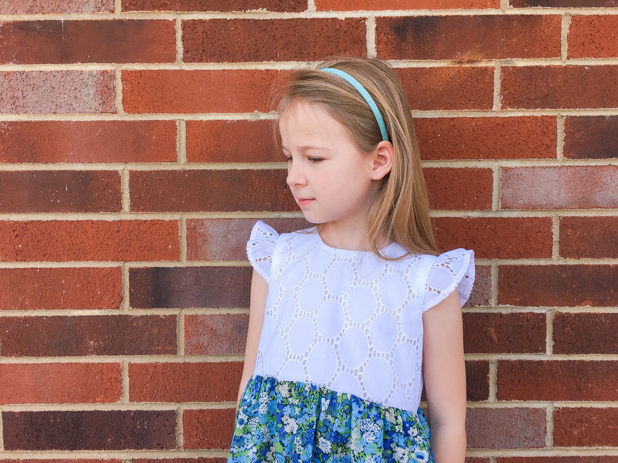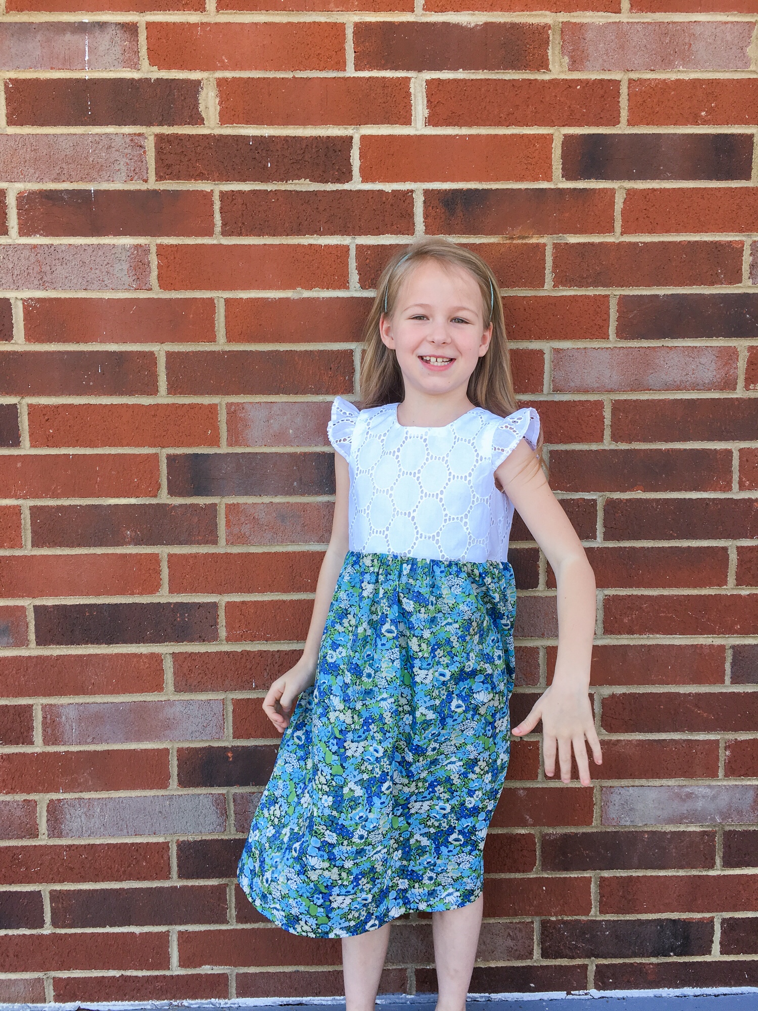 It has all the characteristics of a perfect Layla dress. Pockets! Blue fabric! And a fit-and-flare silhouette. This is a dress that makes her want to twirl and skip and that makes me grin from ear to ear.