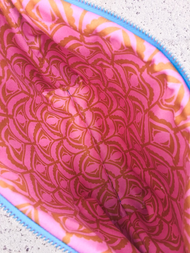 I finished the panel by fusing it to some Flex Foam, also made by Pellon, which gave the bag great structure and weight. The interior is fully lined with a favorite print from her home decor collection, Drawing Room.