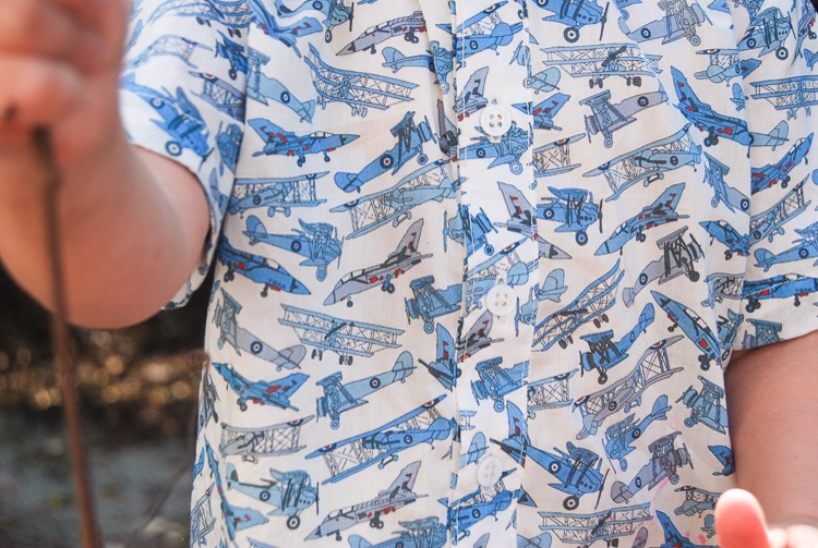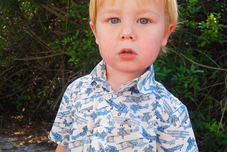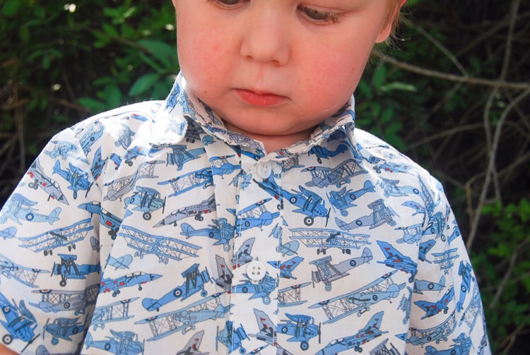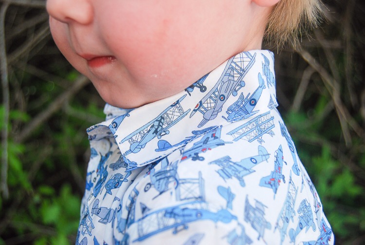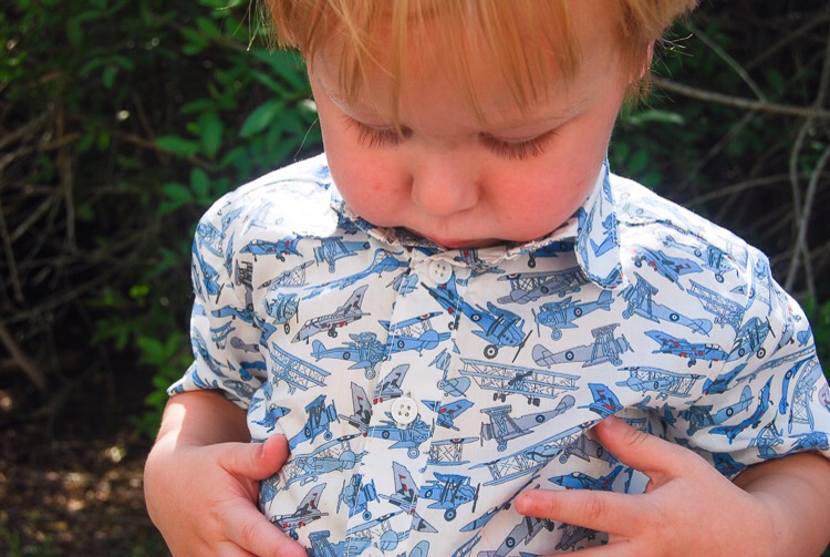 I LOVE when dreams become reality. Back when Liberty Love came out I remember swooning over the matching man and boy buttondown shirts made up in Tom’s Jets. When I found out Wallace was a boy at our 18 week ultrasound, I searched high and low for even a small piece of this print. I had zero luck, but thankfully Queue for the Zoo was released and I was easily won over to the new and readily available print. I gave up on ever owning any Tom’s Jets.