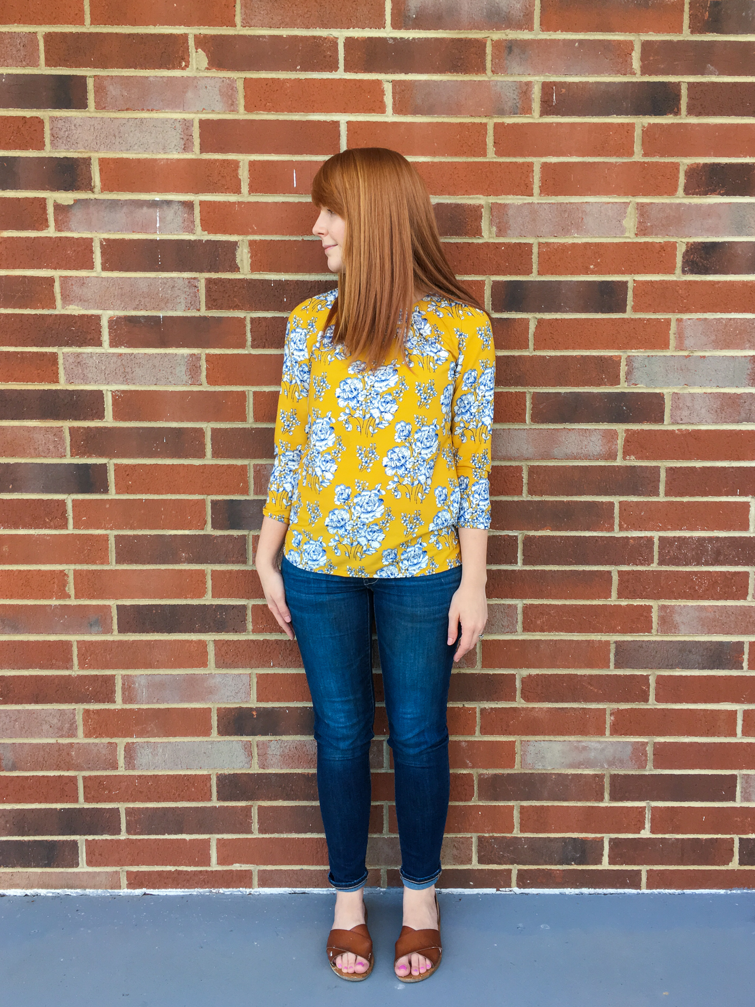 The neckline is finished with facing which I normally hate more than anything, but honestly it goes well here. I would use a different interfacing next time because the one I used is just a touch too stiff and I think it makes the shirt a little to stiff at the top. Its just a touch tighter than I feel like it should be- not when I’m standing, but if I reach over my head, I do feel like it restricts my movement just a little in the back. I’m guessing it has to do with the interfacing, but I’m going to play around on my next version and see if I can remedy that, because the fit overall is very good. I wouldn’t want to go up or down in size, because I do like the fit.