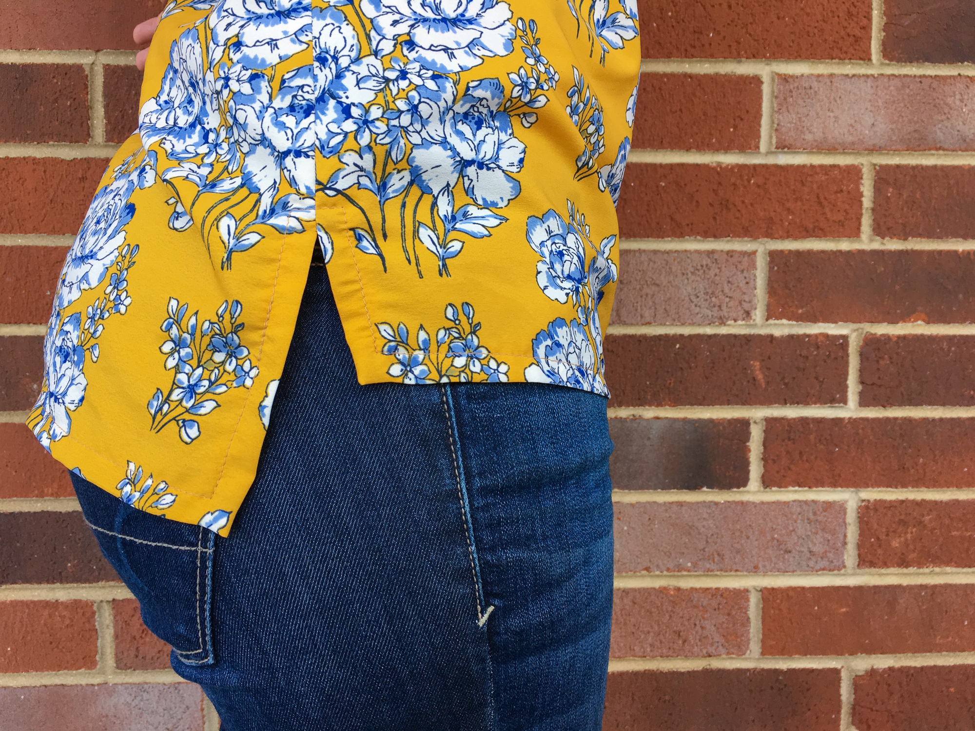 The hem is a split hem with a lower back and higher front. I wasn’t sure how I would like that part and considered just making a straight all around hem, but I’m so glad I gave it a chance because its so darn good. A special thanks to the husband for making me look even more bootylicious than normal. NOT. The man does not understand the meaning of “get a flattering angle”.