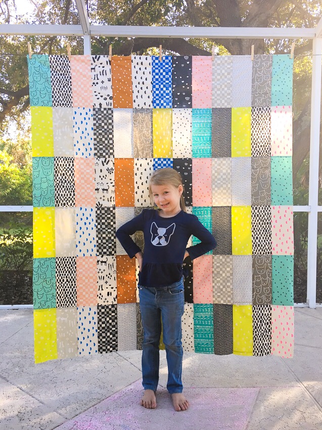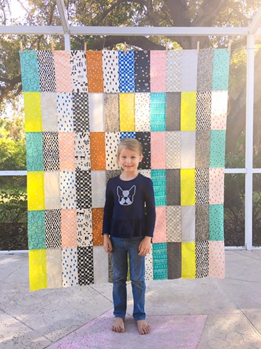 We had a wonderful time sewing together. The Swatch Quilt is very beginner friendly, and even with the stitch speed turned down, we completed the top in just a few hours. It’s 52″ wide by 60″ long so I think I’ll have her choose a voile or lawn for backing because I hate piecing backing together. Also, if it isn’t soft, she’ll never use the quilt. (I haven’t spoiled her. Some people in her life have given her those awful fleece character blankets, and if I don’t make her soft things, she won’t use them. And I need her to know quilts are better. ;) )