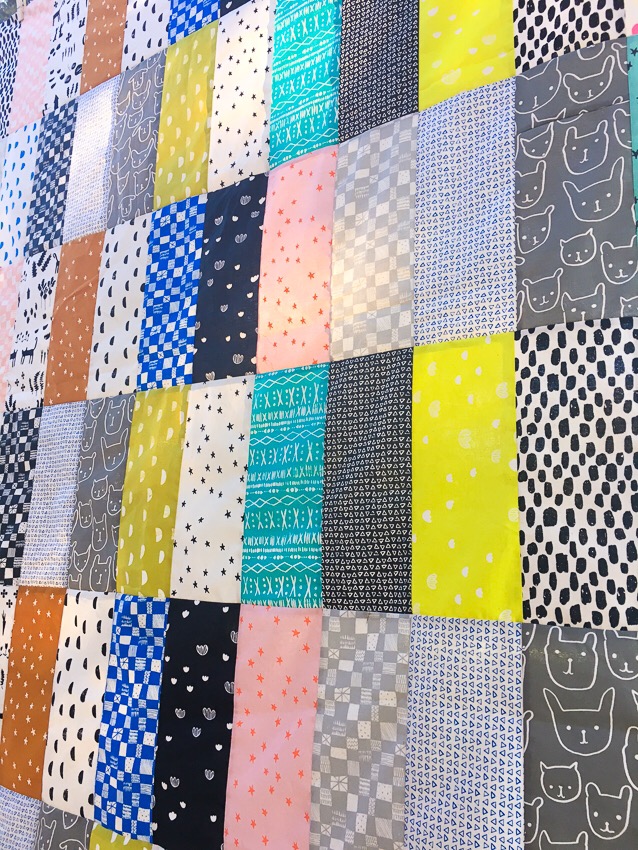 So we were soon on our way to sewing a quilt top together! Layla wanted a different layout than the one in the pattern, so she arranged, and we added a row (column?). She has opinions on all things under the sun, so her change in design was expected.