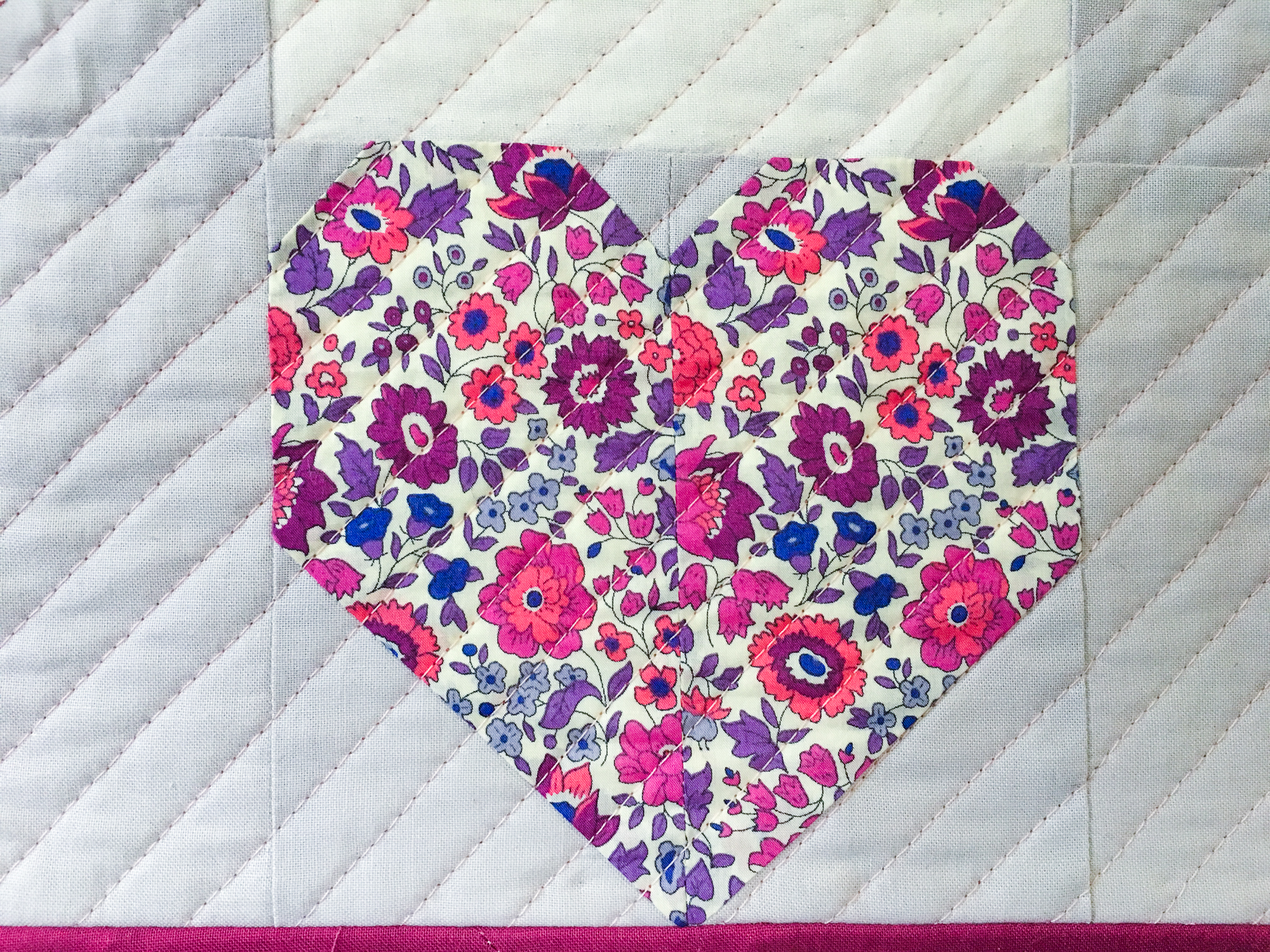 And D’Anjou in this glorious purple color. I have always wanted enough of this print for a dress, but its not going to happen. Still, I can appreciate its beauty in this little heart block.
