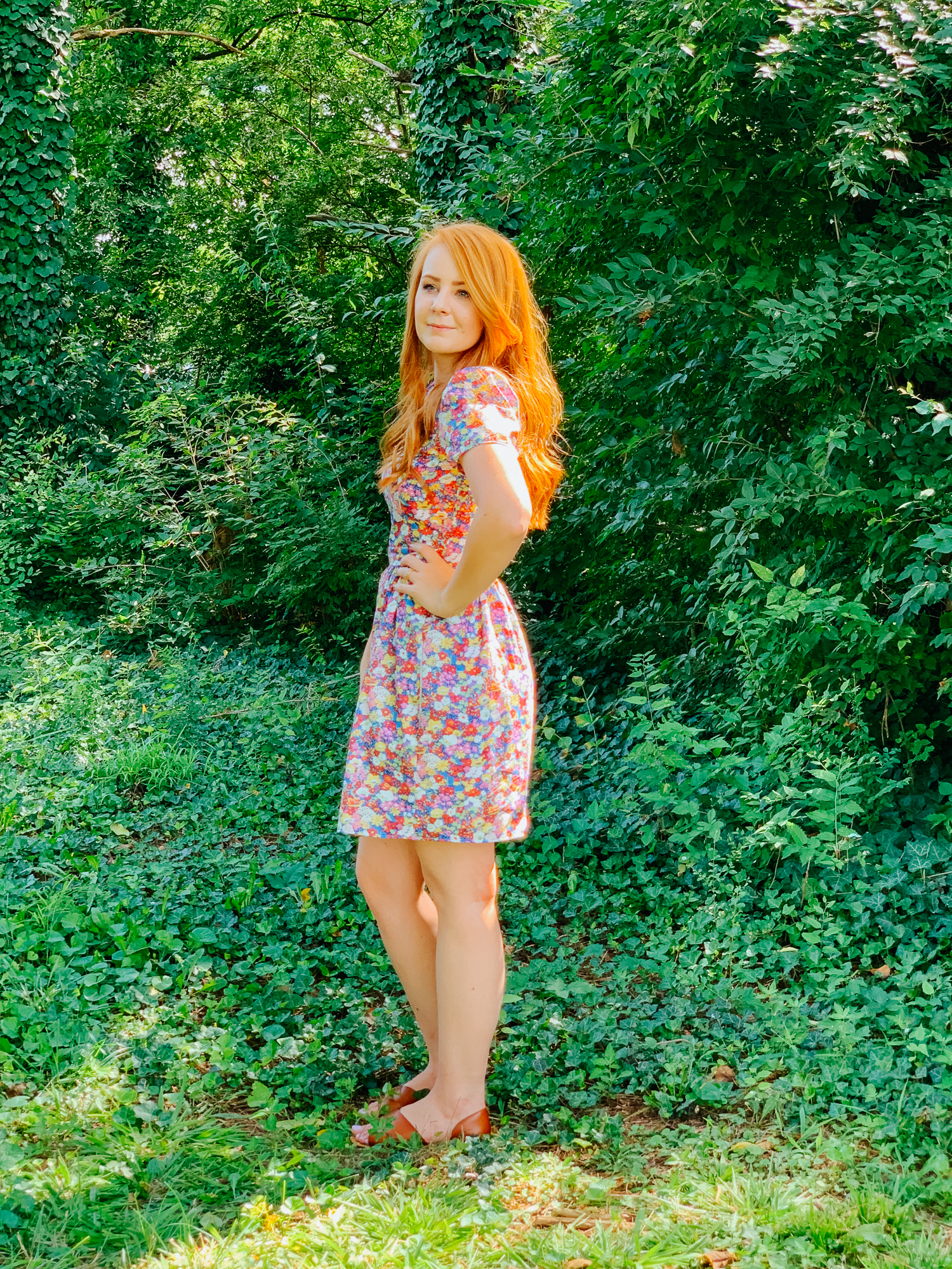 So the dress I’m showing you today is a modified Michelle, My Belle Dress. If you’ve followed me for any length of time, you likely know this pattern is my all time favorite and most used. I use the bodice as a starting point for all sorts of modifications, then I do whatever seems most fitting for the skirt. The pattern is from the book Liberty Love, which is far and away one of the best crafting books ever written, and one I highly recommend you add to your library if you like to do any kind of sewing as it has a variety of projects.