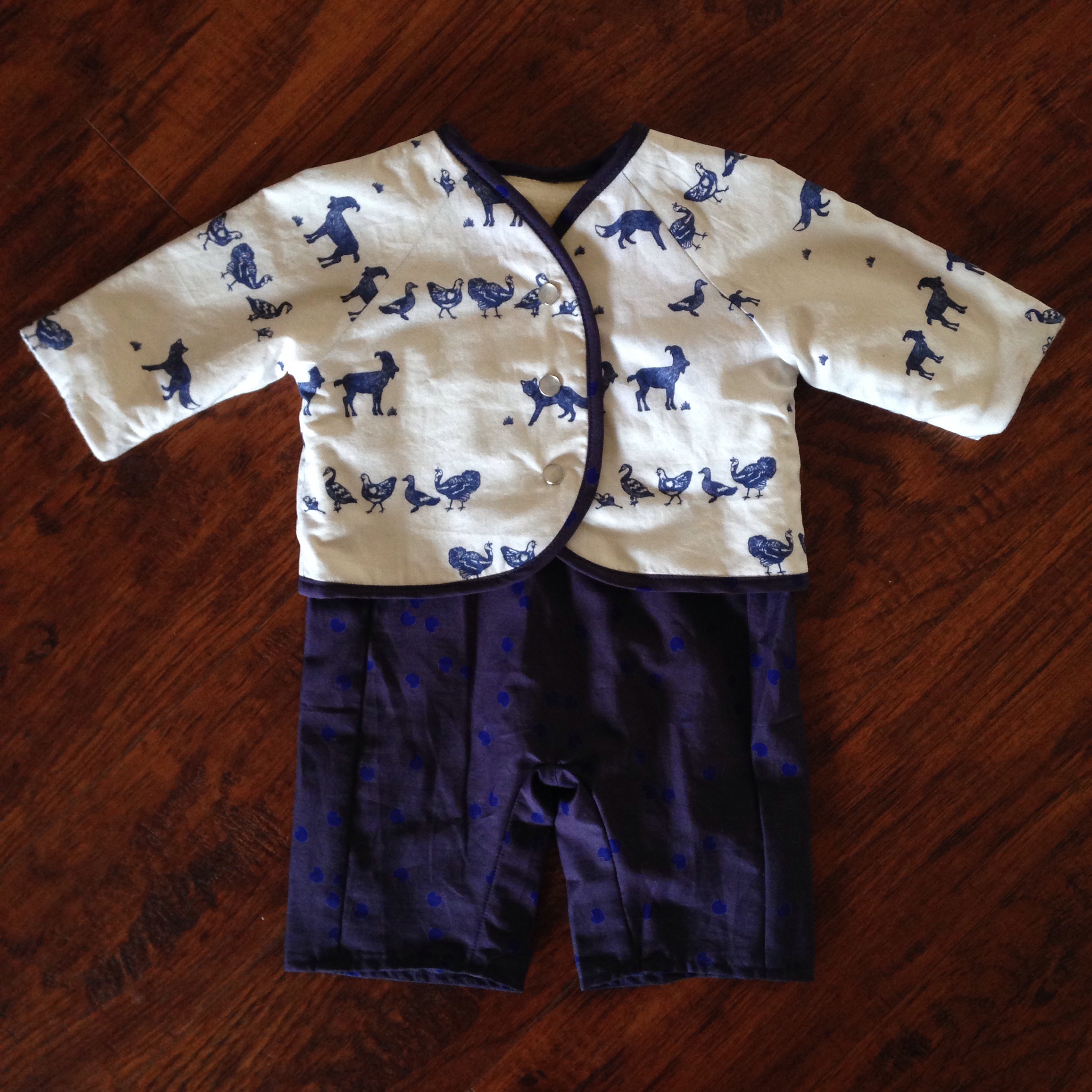 Good afternoon! I told you I’d be back sooner than later! This past weekend I tackled a baby project, and thankfully I’ve been able to maintain good momentum since. The ladies at Hawthorne Threads gifted me a cut of their Forest Fables fabric (Forest Caravan in Indigo) for the new little man. I intended to make a newborn romper, but instead made a Sherpa lined jacket using the Lullaby Layette pattern from Oliver + S.