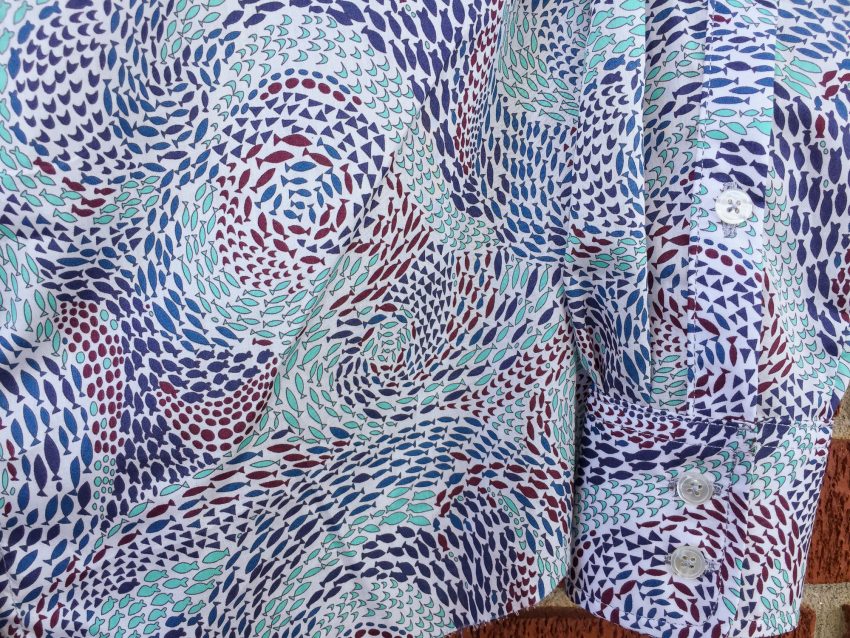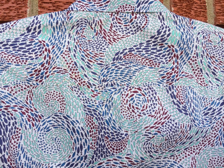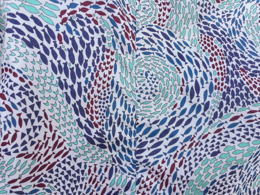 The first version I made was with a brand new fabric from Alison Glass for her new lookbook. I can’t show that yet, or even say much about it, but I was so excited with the result, I immediately cut my next two versions from two of my favorite Liberty prints. That green Wiltshire (sage), which just melts me, is from Jones & Vandermeer. And the fish print is called Shoals. Its from the Spring collection, Castaway