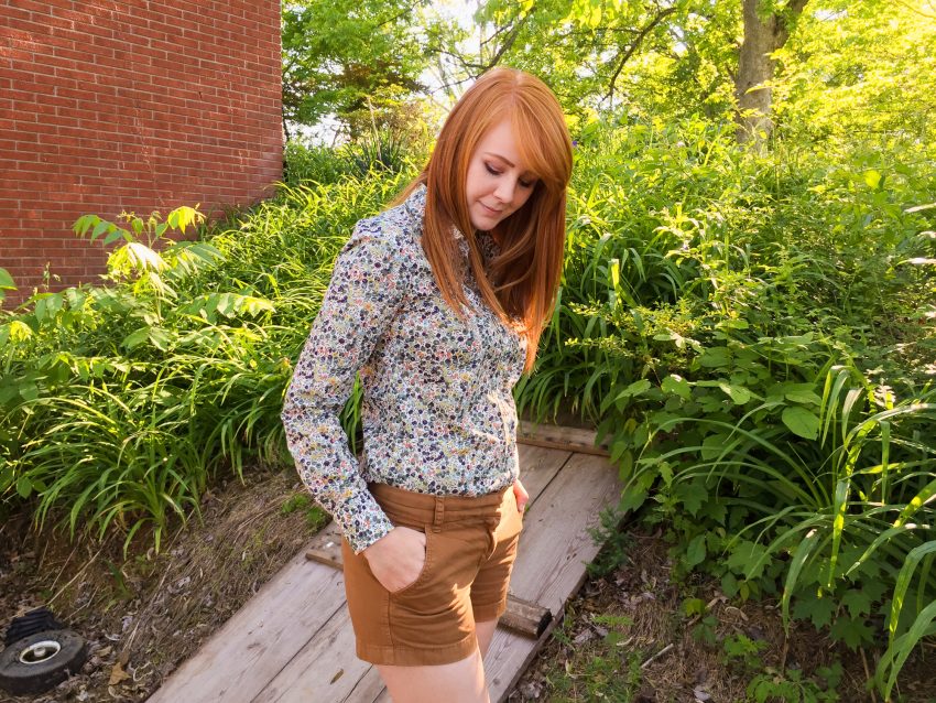 Have you ever had something you wanted to do so badly that once the chance came around, your expectations were so high, you were nearly frozen with fear of failing or second guessing everything? That’s me. You see, my favorite wardrobe item is J.Crew’s Perfect Shirt, the most well made, perfectly fitting, brilliantly constructed shirt I’ve ever worn. It is practically perfect in every way, and so aptly named. I would come across Liberty prints and see nothing but this shirt in those fabrics, so I guesstimated my needs and purchased cuts when I saw fabric I loved. The problem was, I didn’t have a pattern for recreating my favorite shirt.