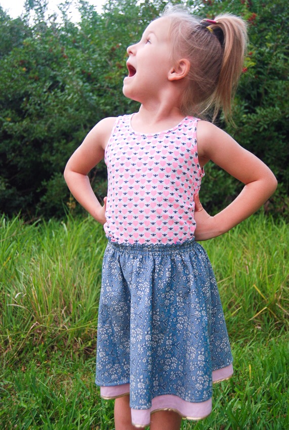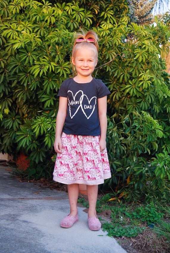 Layla did just what I thought she would and sported both sides of skirt with a simple tee or tank. She’s just a laid back girl, and while this skirt is particularly girly, she will make it her own. I fully expect to see it paired with a clashing tee shirt and glitter tennis shoes in the near future.
