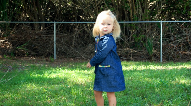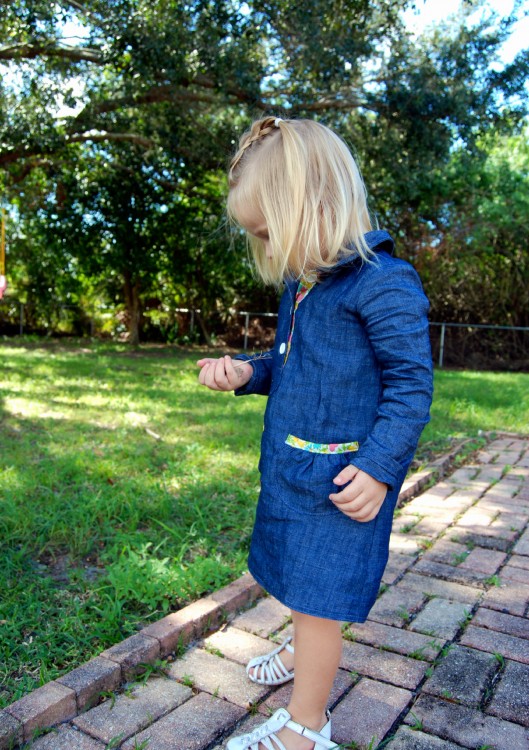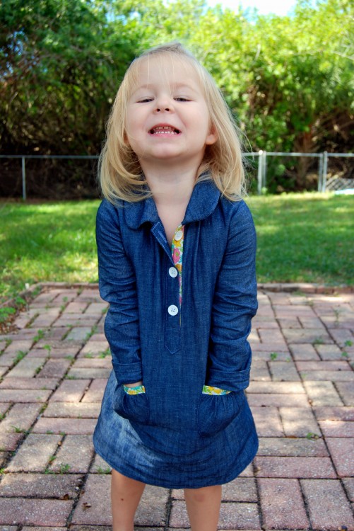 Layla is very proud of her new dress. She just loves when I make her clothes, which brings me an immeasurable amount of joy. And let me tell you, Leisl Gibson makes it so easy! Her patterns are so well written and thorough, when I finish a pattern of hers, one could easily ask if the clothing I made is store bought. I’m addicted to Oliver + S!