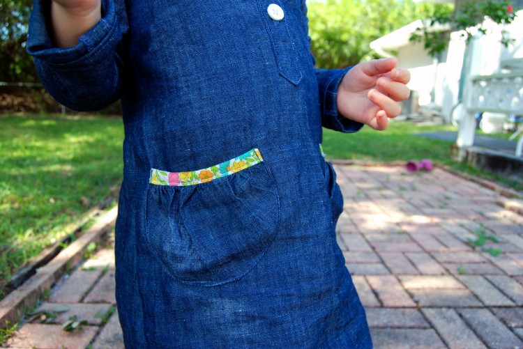 I’m sure it goes without saying that the floral on the button placket and pocket trim is Liberty of London in Poppy and Daisy. It took very little to get me addicted to this stuff. I can’t afford it at all, but I used just a tiny bit to make the dress really pop, and I think it worked quite well. Depending on how you use it, a little Liberty can really go a long way.