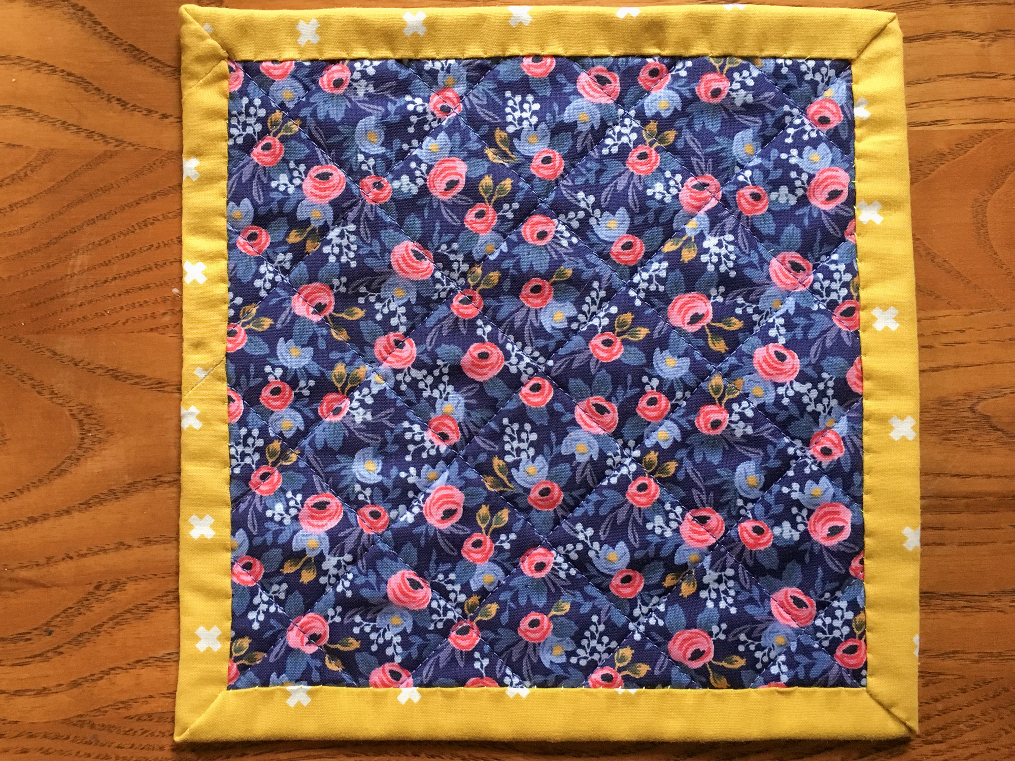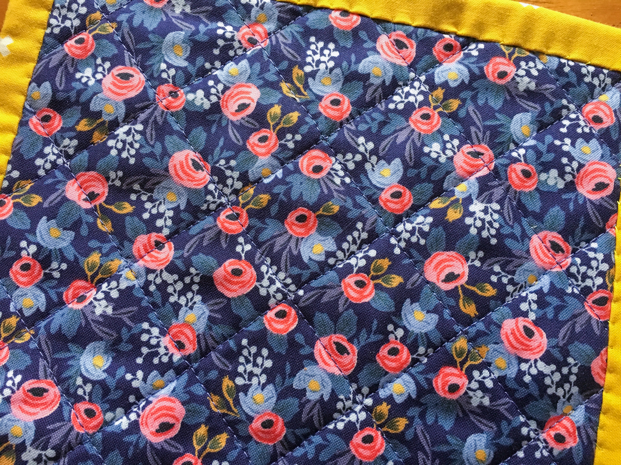 After that, she found a backing she liked and we made a quilt sandwich. I marked some quilting lines with a Frixion pen, and then we switched over to the walking foot. She did so great quilting! She just guided the marked lines through the center of the walking foot and she was golden. *proud mom*
