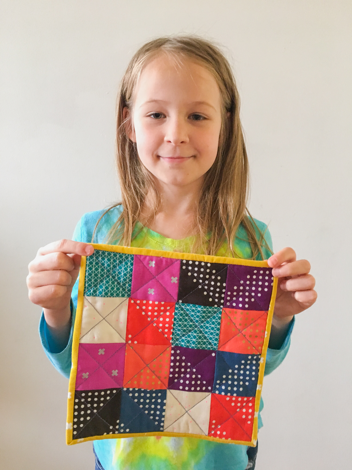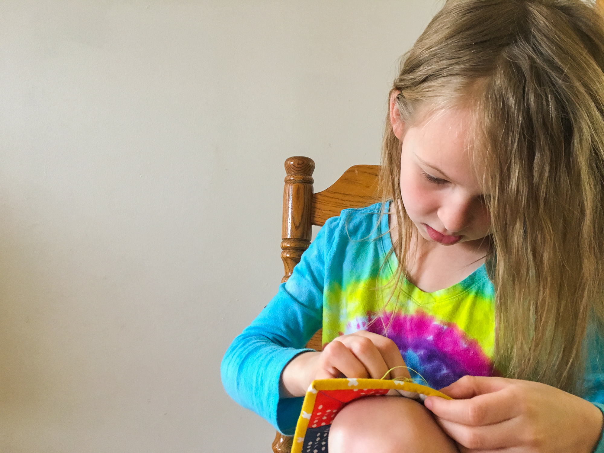 As my kids tick off little projects, I do try to teach them skills. Where when she first began at three or four, I would just hand her squares and she was welcome to stitch them in whatever manner she chose, I am conscious of teaching her the right way as she grows older and gets more experience under her belt because I feel like its always easier to learn the right way than to correct a bad habit. Plus, having the skillset will give her so much more opportunity to grow and create as she chooses.