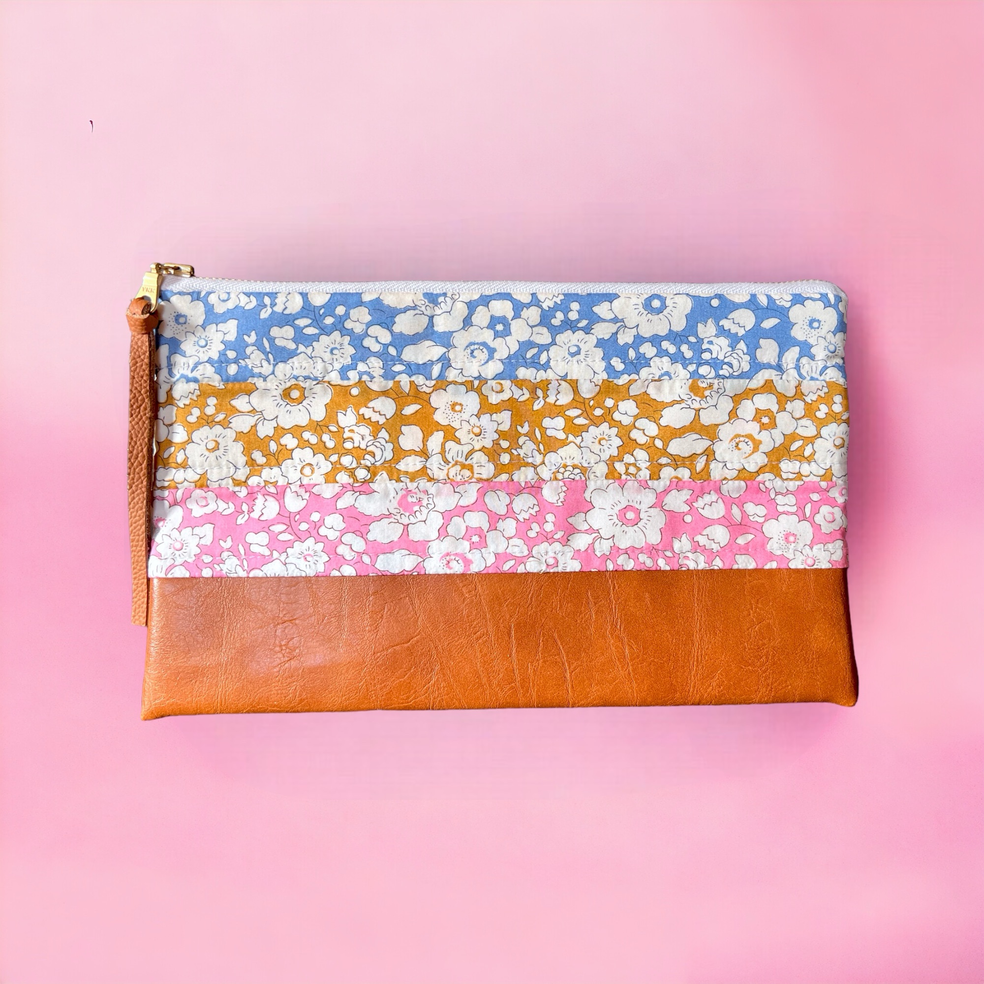 The Signature Clutch is the quintessential bag for everyday. It is the perfect size to hold everything you need, and not the stuff you don’t need. The Signature Clutch easily holds your smartphone, cards and cash in the handy interior pocket, your keys, checkbook, chapstick, and whatever else you need when you’re on the go. It fits easily into larger bags when you need to carry more. Features Liberty print on top, and vegan leather on bottom and is fully lined with an interior pocket for holding cards/cash.