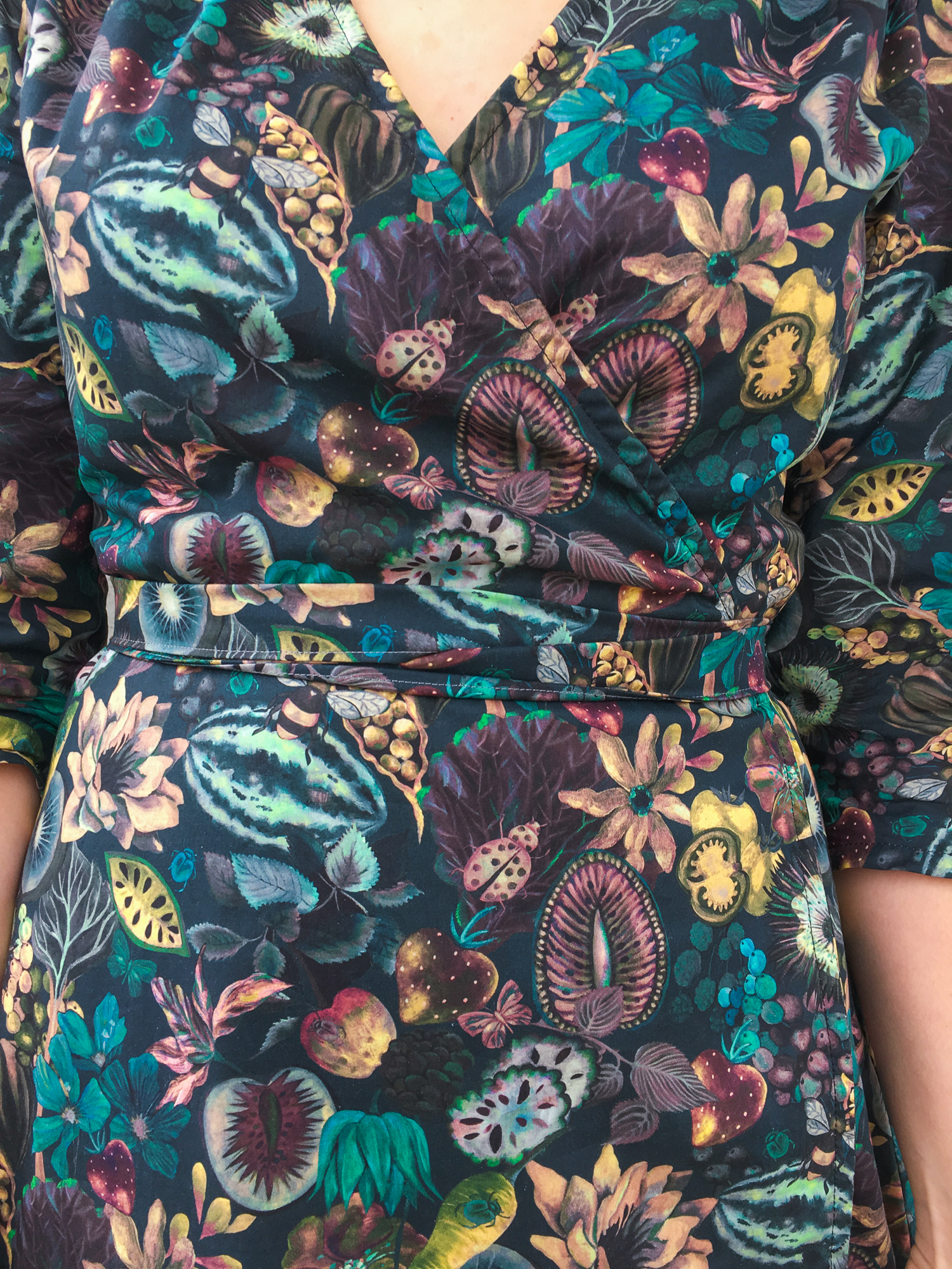 Finally I should tell you about this fabric! Isn’t it gorgeous? Its the Earthly Delights print from Liberty’s Garden of Temptation collection last year, and its one of my all time favorites. I just love how utterly lush this particular print is. It came in a few different color ways, and I got this one from Jones & Vandermeer. I’m actually going to be showing you another piece I made for myself in a different color way of this same print later this week! Its that good. I’m pretty sure I would shamelessly wear both within two days time.
