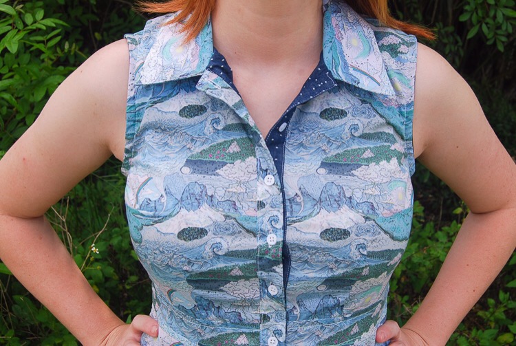 So as I mentioned, sewing this top up was a cinch until I got to the buttons, but only because I had grown and the fit isn’t perfect. I love it so much, however, that I’m willing to wait a few months to wear it. It’s time for me to get back to exercising and turn a blind eye to the Mint Chocolate Chip Blue Bell.