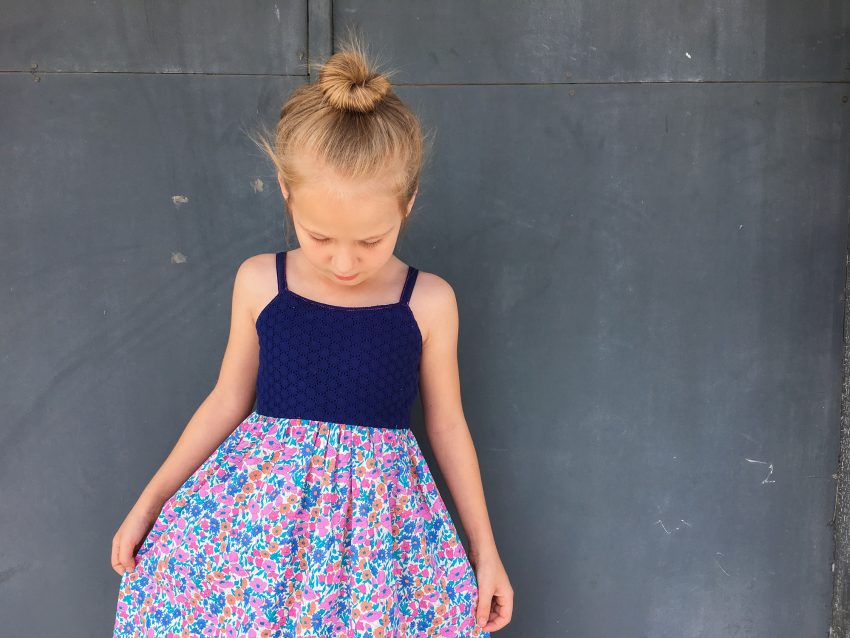 I believe I made this dress on Easter, but I’m just now getting it on here to chat about. I feel like this year, I’ve had a great need to make super practical pieces for the wardrobe whether its something for me or the kids. It can still be trendy and fun, but practicality seems to be the underlying theme. One such way I found I can make Liberty’s florals perfect for everyday is by pairing them with a good basic. I often wear a Liberty top with jeans or chino shorts, and have a great balance. When I drafted up this dress for Layla, I wanted it to be timeless and feminine, and be able to be dressed up or down.