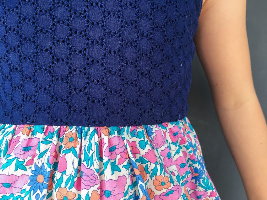 It creates the perfect balance of plain and print without being boring. I’m planning to incorporate a lot more eyelet and other solid-yet-interesting fabrics into my (and the kids’) wardrobe in an effort to bolster the selection of basics.
