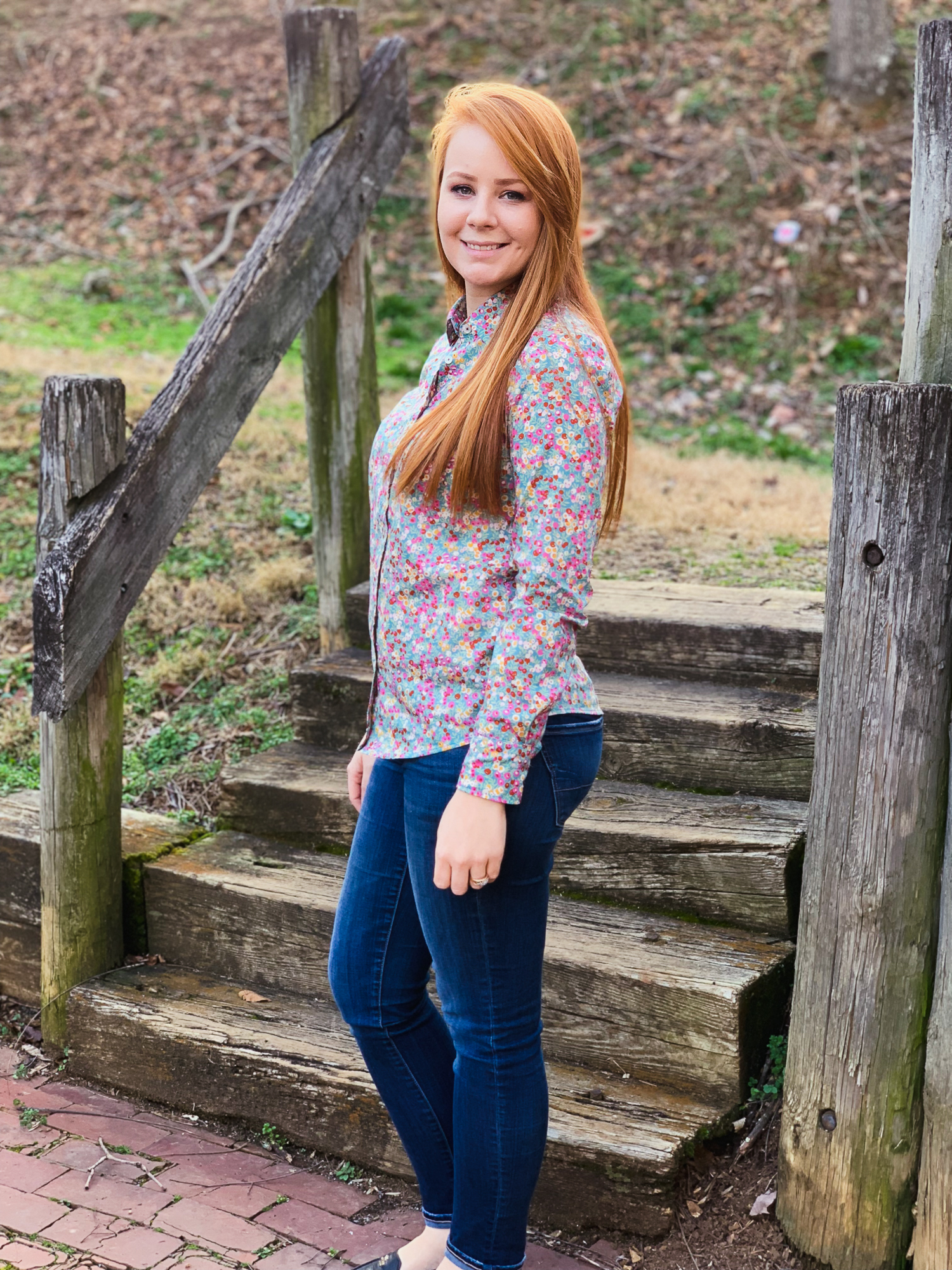 Back on track! I posted about my first two shirts back in 2017 and you can read all the details on that post, but suffice it to say even though it took me way too long to finish this shirt, it was absolutely worth the wait. The fit is so good, and the fabric is one of my all time favorites. I stumbled across the color way of Wiltshire several years ago, but I could not for the life of me find a garment sized cut of it anywhere worldwide. In fact, I couldn’t even find a scrap of it. One day, a friend of mine in Great Britain posted a picture of it on Instagram, advertising she had a bit for sale. She usually sells these great little charm bundles, but I immediately was messaging her oh my gosh, i have to have that. you have no idea how long i’ve been searching for that exact fabric. She’s a total Liberty connoisseur, and she understood right away that I would treasure this fabric. She arranged for me to get what I needed, and was so generous with me. I’ll always remember her kindness when I wear my shirt. I actually got this fabric to recreate this shirt long before I had even thought to deconstruct one. I just knew this fabric must become my favorite shirt! They are a match made in heaven.
