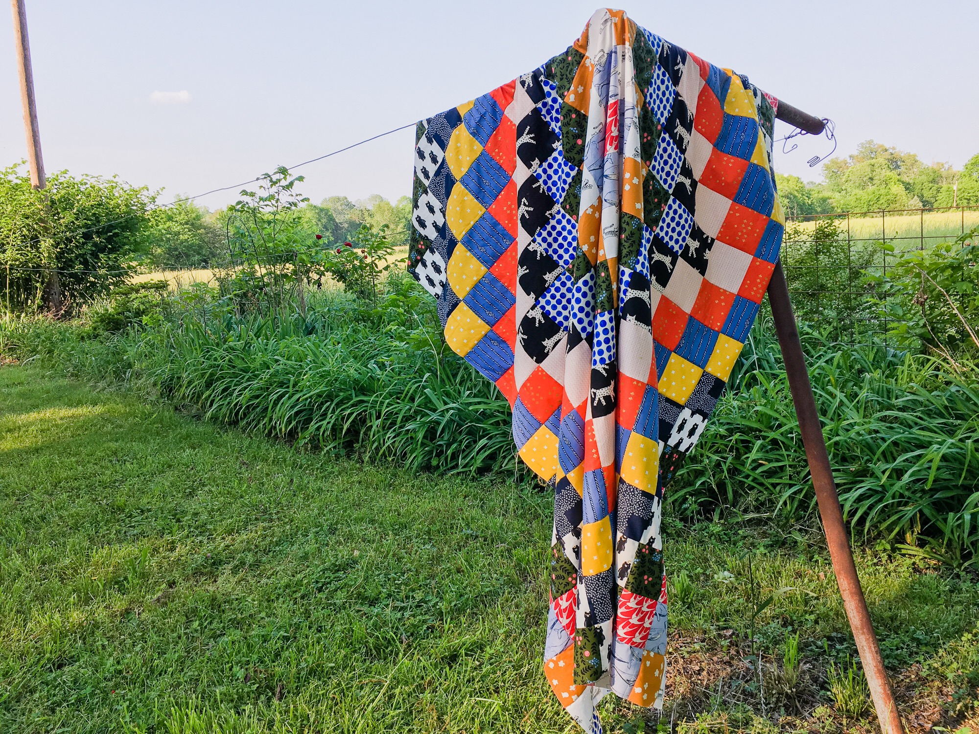 He was thrilled to go wild with my Cotton + Steel and he chose an array of colors and prints. I decided on color order and began cutting. I had to halt halfway through assembling the top while I took care of some other projects (and also because I was short on fabric on a few prints). But I think it worked out well because I was able to finish the top on Thursday and then he turned three on Friday. So it was sort of a present, right?