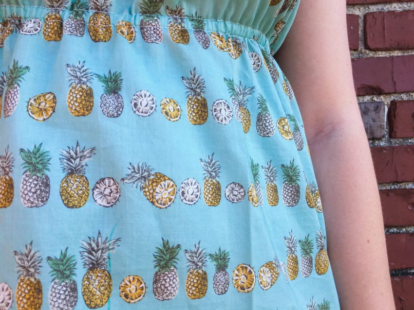 Next up is this awesome pineapple lawn from Hokkah (from Jones & Vandermeer). This one got the elastic-under-the-bust treatment