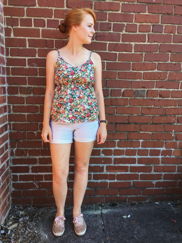 , but also because I was able to squeeze this cami out of leftovers from a dress I made. I had two yards of this fabric, and the dress pattern required 2 3/8. I got the dress and the cami from the two! Woo hoo! I felt like a garment boss.