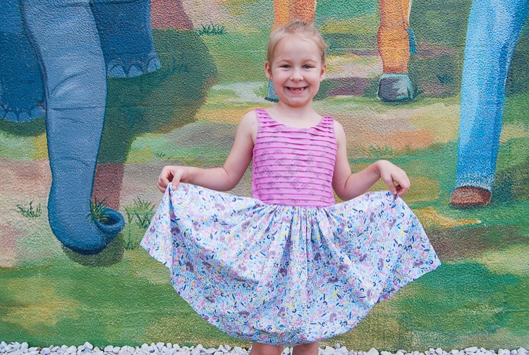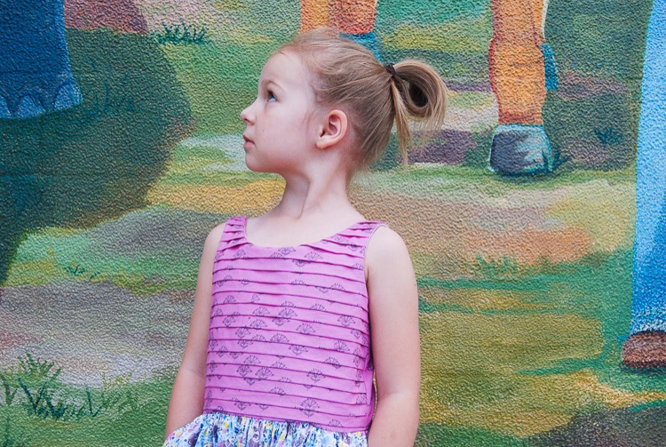 About a month back, the ladies at Hawthorne Threads sent me some fabrics from their new in-house collection, Riviera, to play with. I was just thrilled and began planning straight away. Still on my pleat-all-the-things kick, I decided to make Layla a dress similar to this one I made for Emilee a year or so ago.