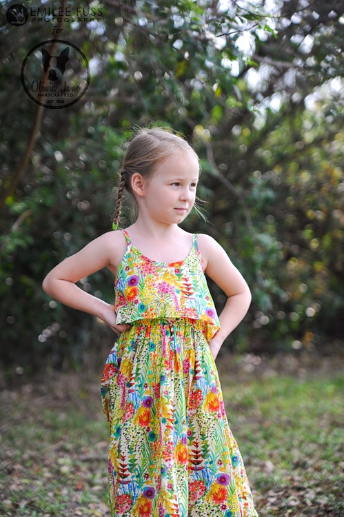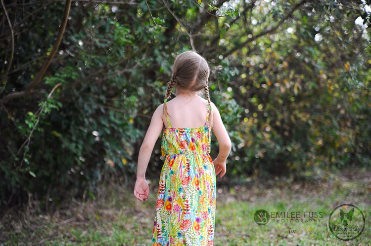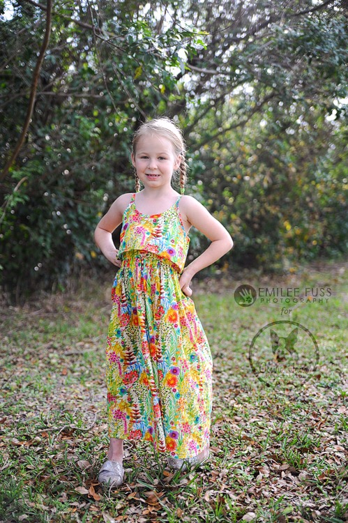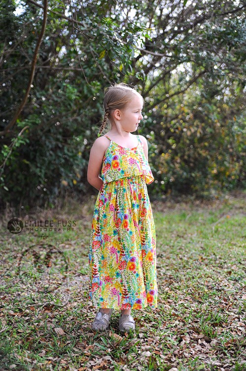 I decided to make a girl’s maxi version of the Catarina dress with the ruffled outer bodice like the hack included in the March issue of Seamwork. I had to make my own templates, so I used an existing bodice to get my measurements and mimicked the shape of Catarina, though the back of my dress is just straight. Since my six year old doesn’t need bust darts, I winged the ruffle bodice hack, and it happened to work out.
