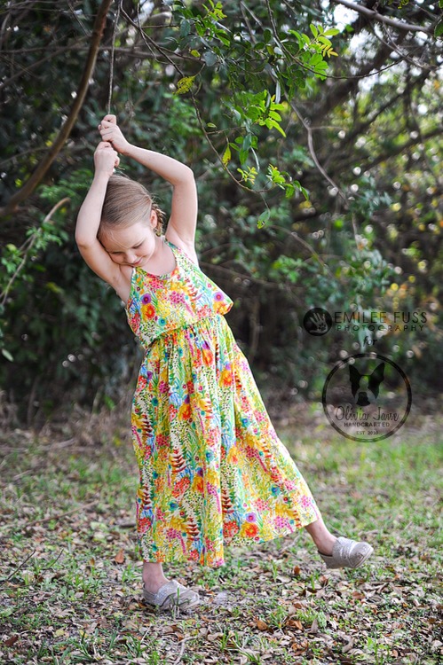 I decided to make the dress a maxi because I wanted to use as much of the fabric I had. Since I left lots of room in the back and bodice pieces for her to grow, I figured I might as well do the same in the skirt, and since she is bound to grow in height before girth, the dress can just be a midi at that point.