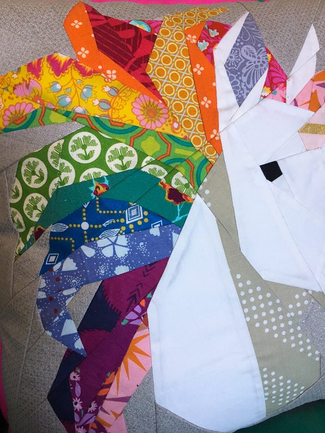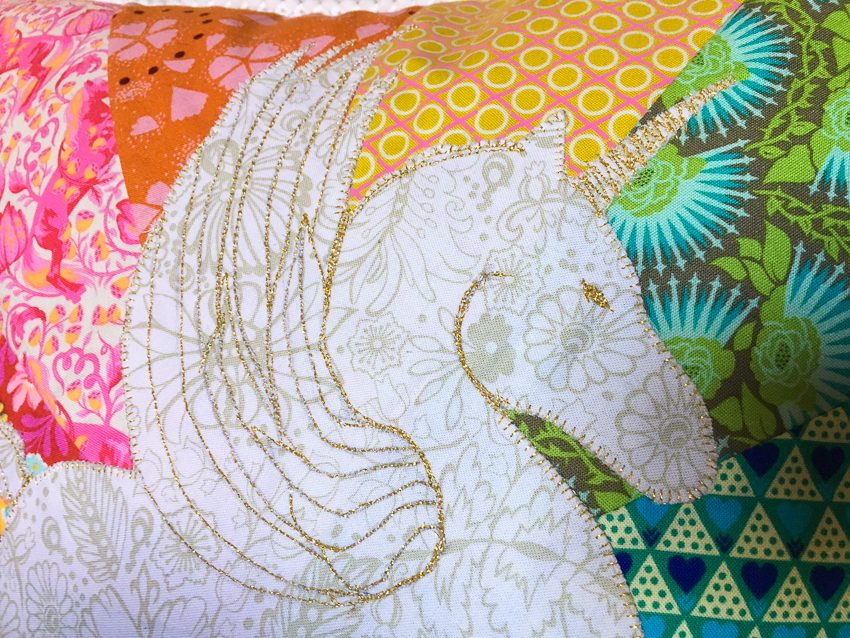 Again here, I used Anna Maria and Tula for the mane. The background and the “shadowed” portions of the unicorn are Cotton + Steel, and the white is from Hawthorne Threads.