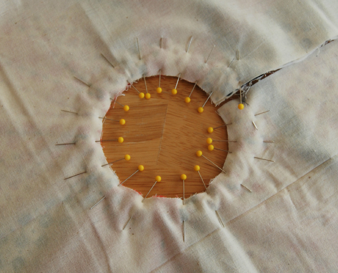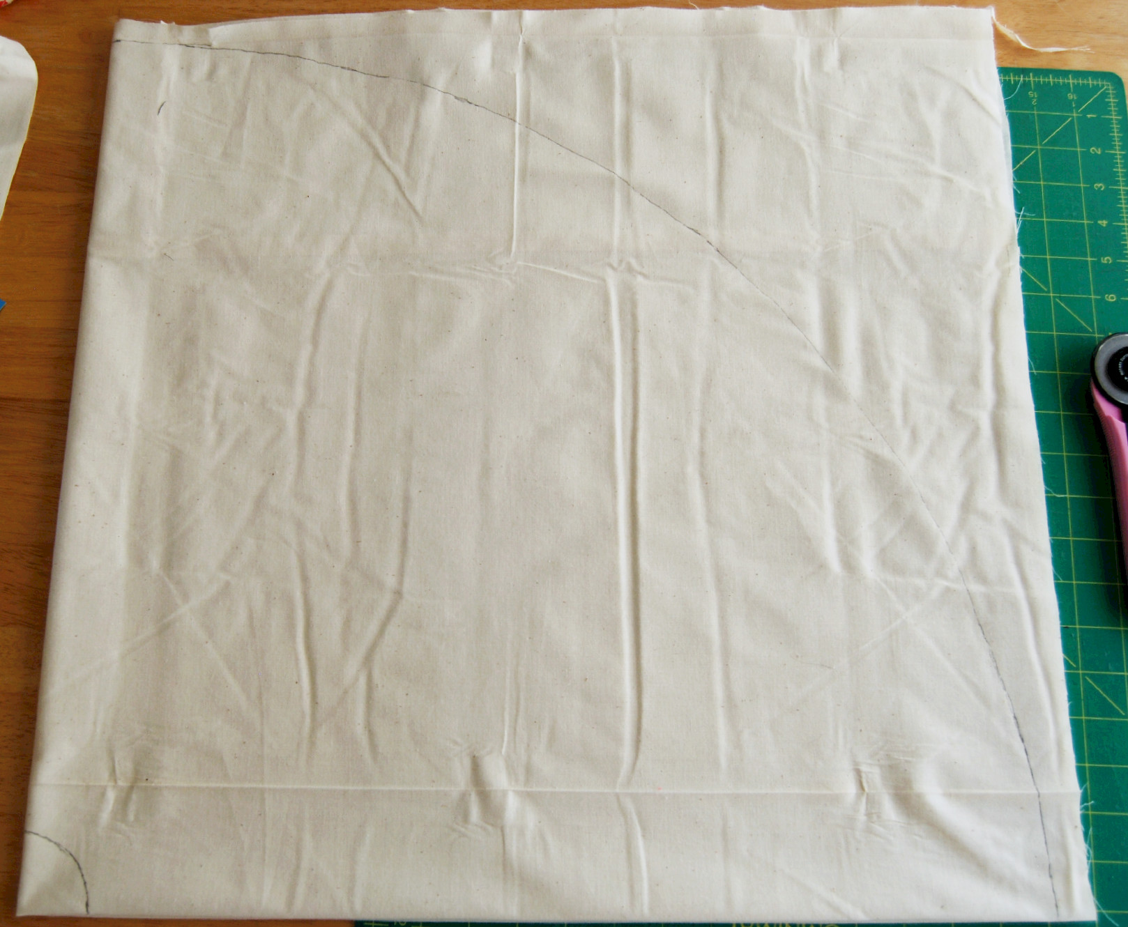 Cut so that you have a full circle, and cut one side of the circle so that you have an opening. Use this as a template to cut out an identical piece from your backing. Cut an opening in your backing as well.