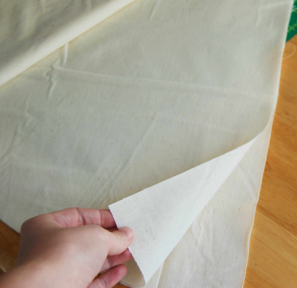 Cut out a total of 20 wedges in the fabric of your choosing using the Tree Skirt Wedge template. I wanted to use four embroidery designs, so I cut four of my wedges out of muslin, then backed them with interfacing.