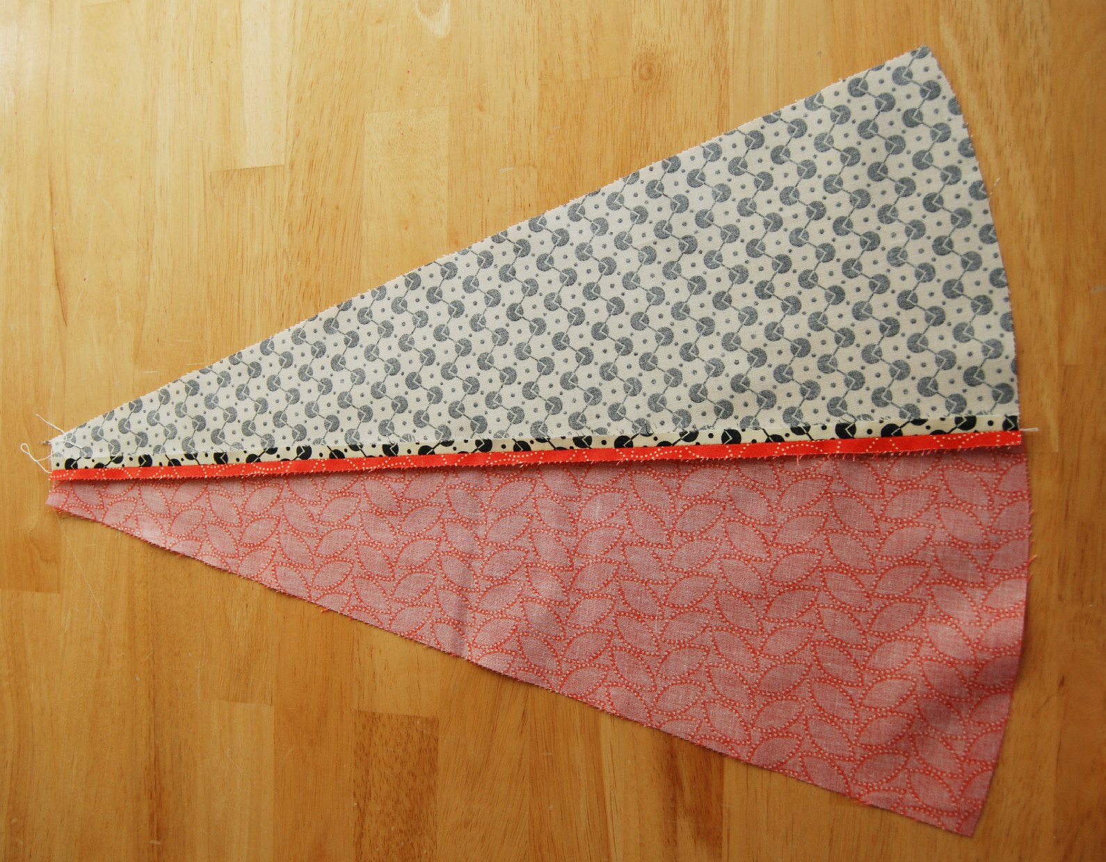 Next, arrange your wedges in the manner most pleasing to you, and sew your wedges together. I sewed together 5 at a time, and then sewed the four sections together. DO NOT SEW ALL THE WAY AROUND. Leave an opening!